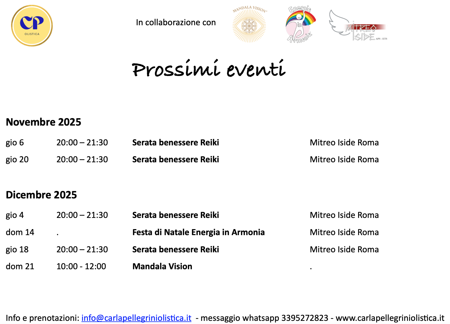 Sono grata all'Universo per aver incontrato Carla! Da subito mi sono sentita accolta e capita, mi tiene per mano nei momenti difficili del mio percorso di crescita, mi è di supporto con le consulenze e le letture energetiche.