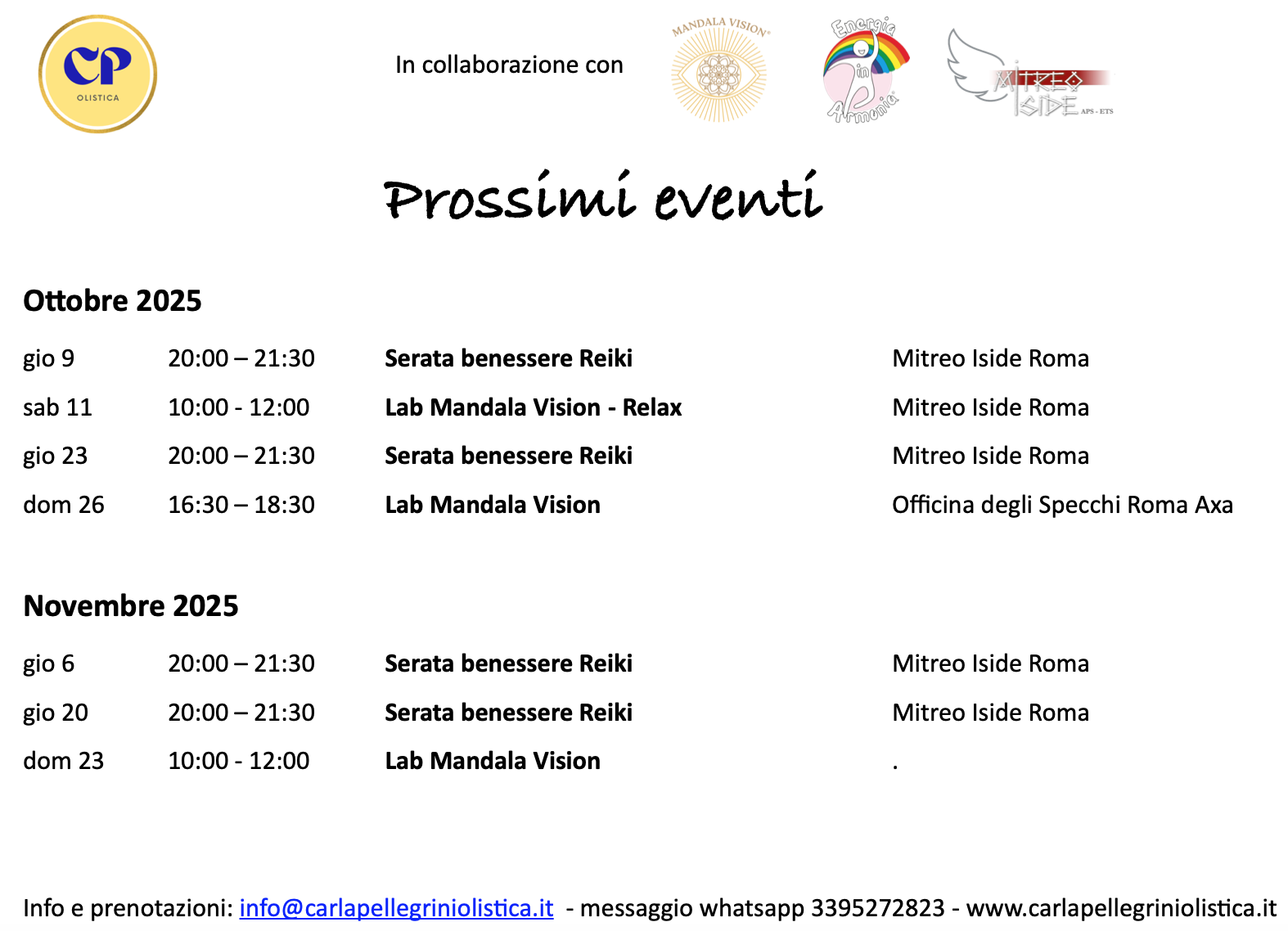 Sono grata all'Universo per aver incontrato Carla! Da subito mi sono sentita accolta e capita, mi tiene per mano nei momenti difficili del mio percorso di crescita, mi è di supporto con le consulenze e le letture energetiche.